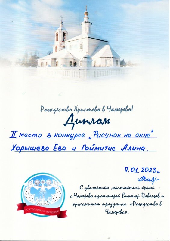 Диплом за 2 место в конкурсе " Рисунок на окне " 2023 год.