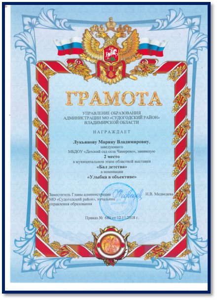 Грамота за участие в муниципальном конкурсе «Бал детства» номинация «Улыбка в объективе»-1Грамота за участие в муниципальном конкурсе «Бал детства» номинация «Улыбка в объективе»-2