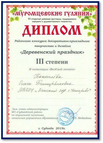 Диплом за участие в районном конкурсе «Деревенский праздник»