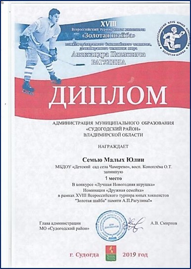 Диплом за участие в конкурсе «Новогодняя игрушка» в номинации «Дружная семейка»