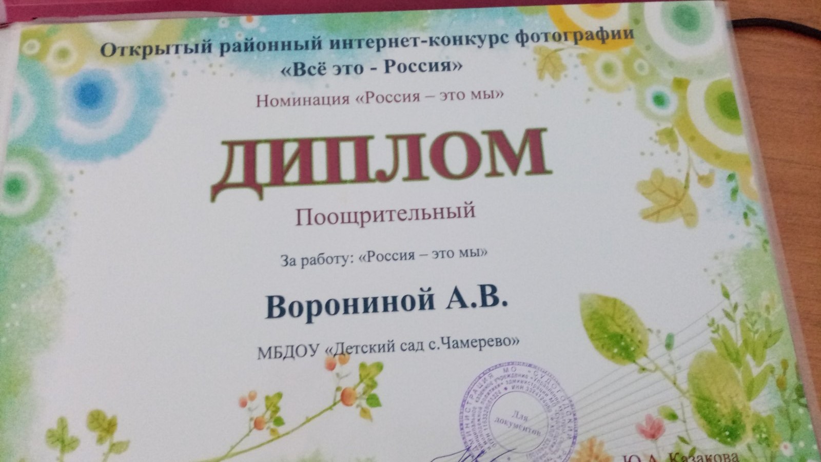 Диплом за участие в районном конкурсе «Россия-это мы»