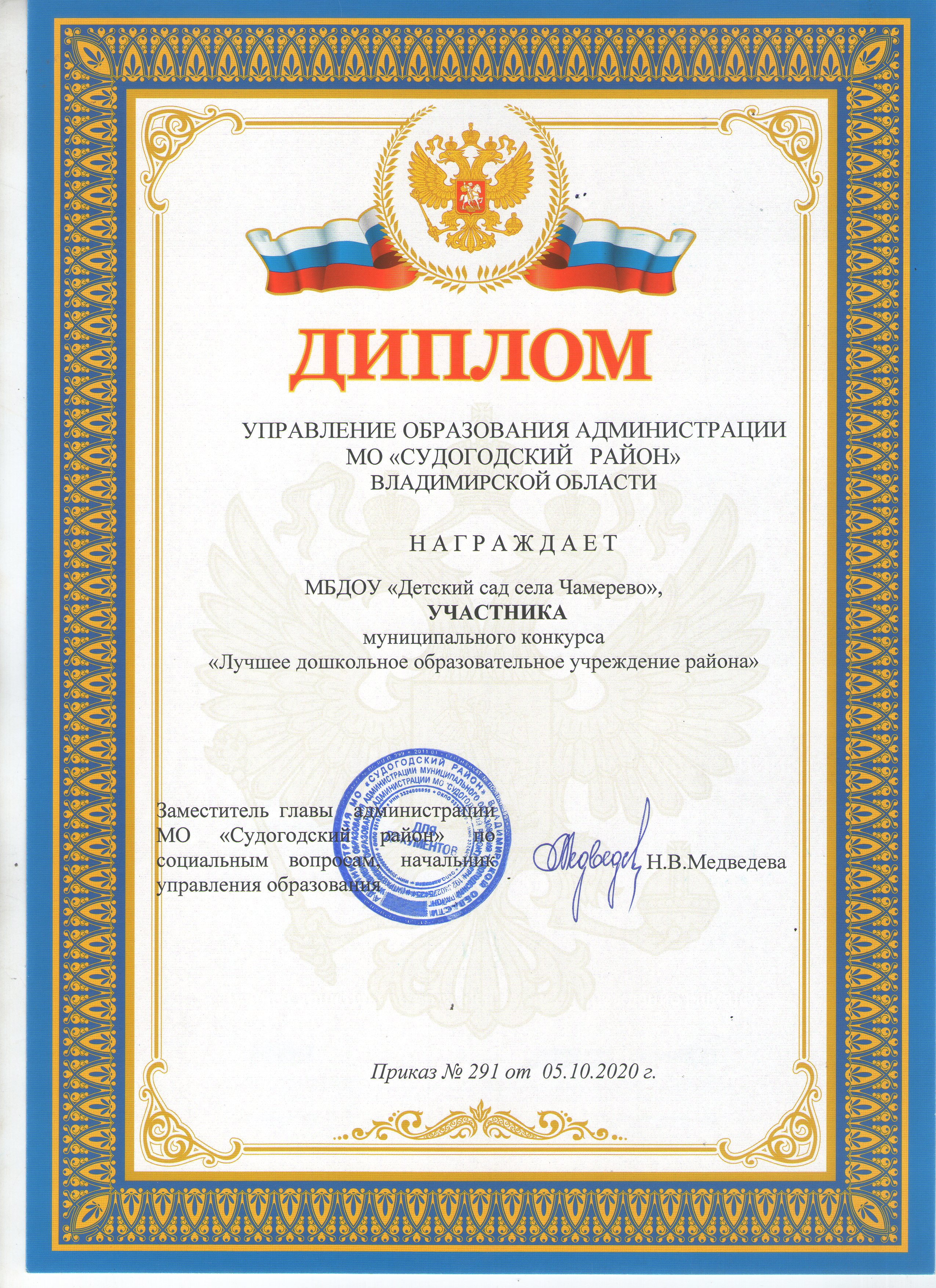Диплом за участие в муниципальном конкурсе "Лучшее ДОУ" 2020г.